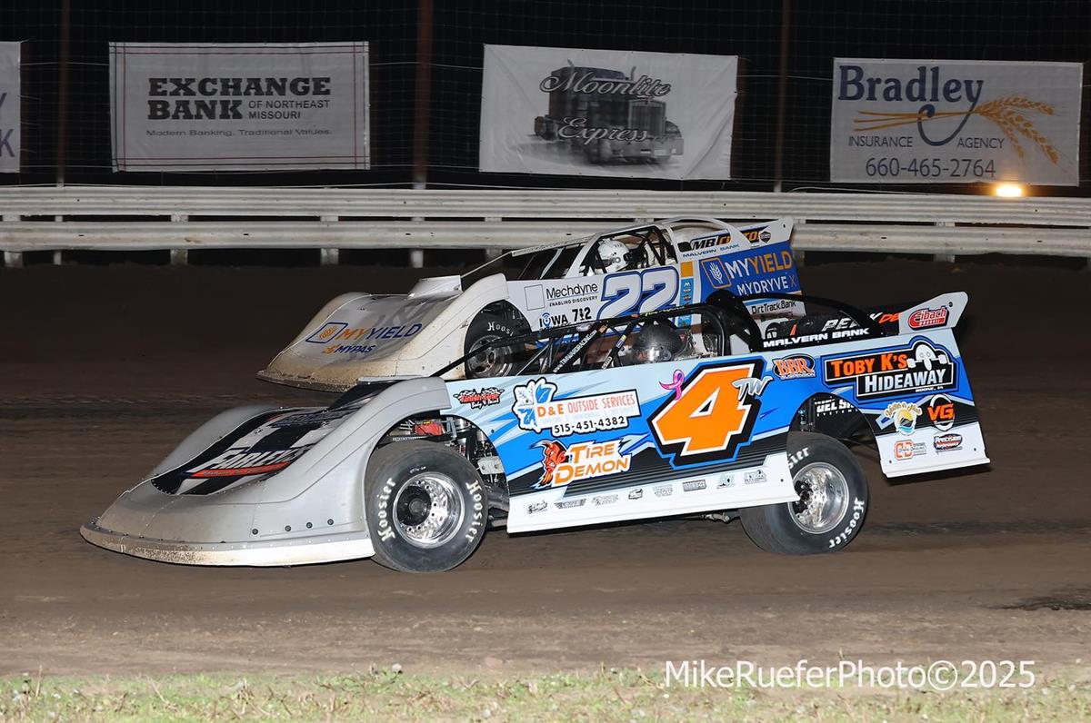 With Saturday’s Late Model plans washed out due to inclement weather, Ward shifted gears and headed north to Boone Speedway in Iowa to pilot his Modified. After placing fifth in his heat, his night came to an early end in the feature when he was forced to retire on lap 19 after getting caught behind a spinning car.